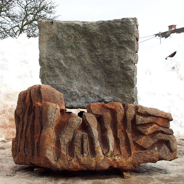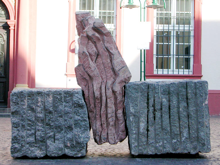 Winter 2002/2003 beschäftigte sich Daniel Rösch mit dem Irakkrieg. Den Kriegsparteien und ihren geopolitischen Zielsetzungen, die im Gegensatz zu den Interessen und dem Wohl der Bevölkerung stehen. Daniel Rösch nannte die Skulpturen: "Between blocks" und gestaltete die Arbeiten aus Granit und Sandstein, wobei das weiche Gestein, der Sandstein für die Bevölkerung steht und die fast quadratischen Granitblöcke für die Kriegsparteien.Daniel Rösch ließ die drei Skulpturengruppen im Februar 2003 nach Heidelberg transportieren, wo sie vor der Heilig Geist Kirche und auf dem Universität Platz für zwei Wochen stehen bleiben durften. Es fand in der Heiliggeistkirche ein Gottesdienst statt, der sich mit dem Irakkrieg beschäftigte. Die Stadt Walldorf erwarb dann eine der Skulpturengruppen und platzierte diese Arbeit in der Fußgängerzone, wo sie noch heute steht.