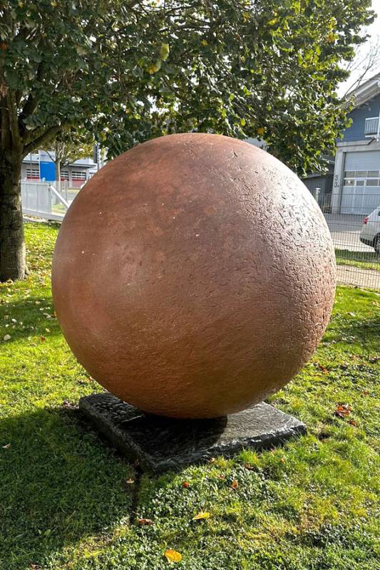 Skulptur zur Grenzöffnung : Aufstellung einer Travertinskulptur für 3 Tage neben der Unibibliothek Freiburg. Arbeit zum Thema BRD/DDR.